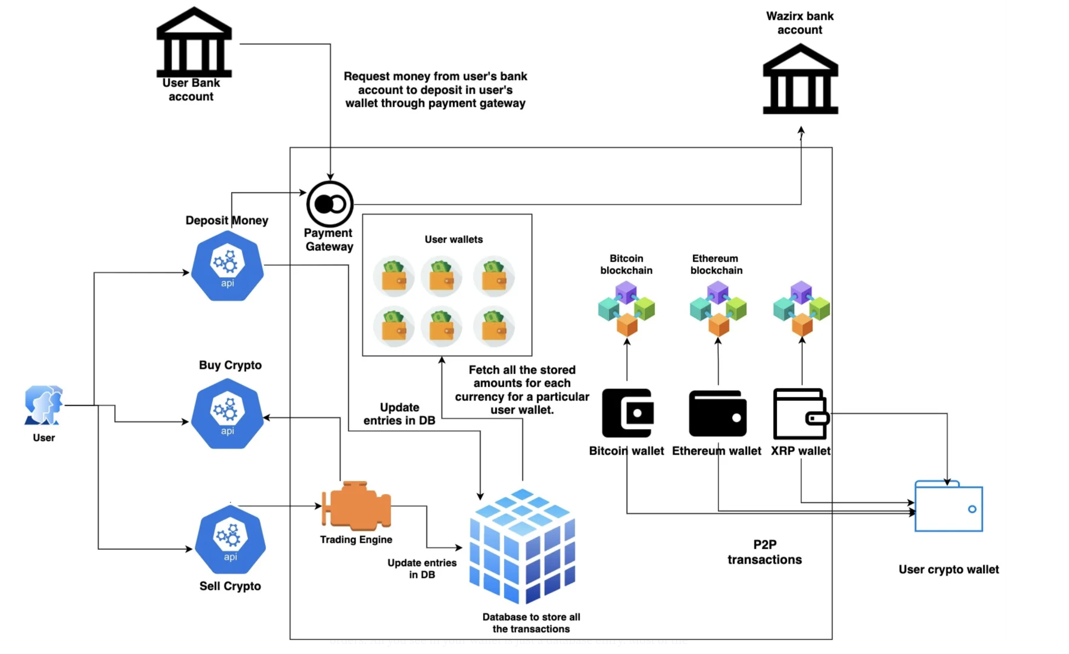 Imagine that we are working as a security engineer for a company that provide crypto exchange (probably Binance, OKX,…), let ask those questions to ourself. Please remember this is just an example. I found this on the internet How does a centralised crypto exchange actually work ? which have a diagram of crypto exchange system, Let’s us try to dissect it and do Assest Managment on it.