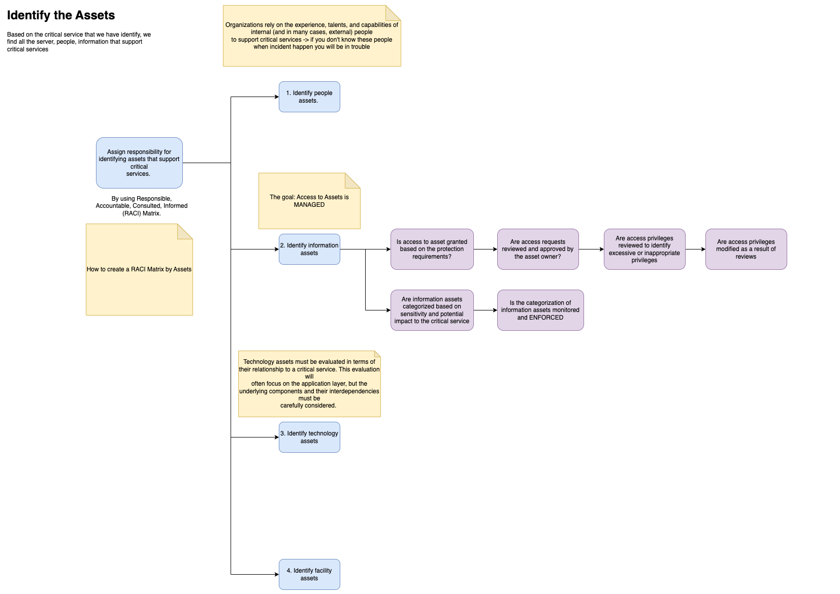 - Create an RACI matrix that outlines each person’s responsibility for specific assets.